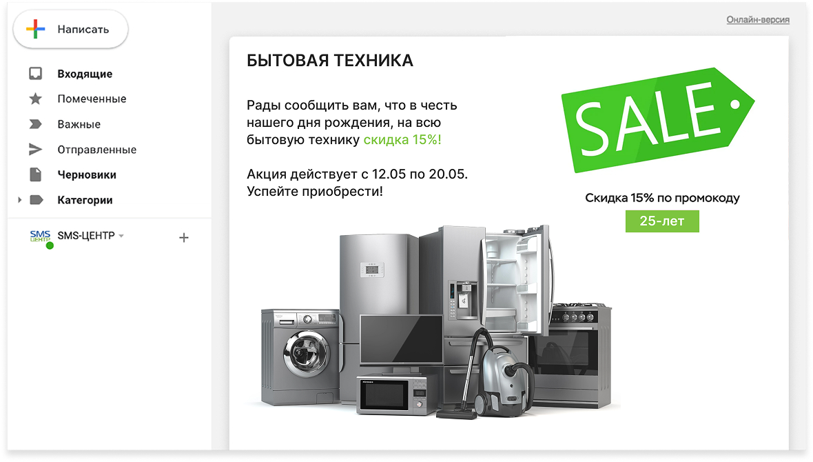 Email рассылок. Для создания шаблона не требуются технические навыки или знание HTML
